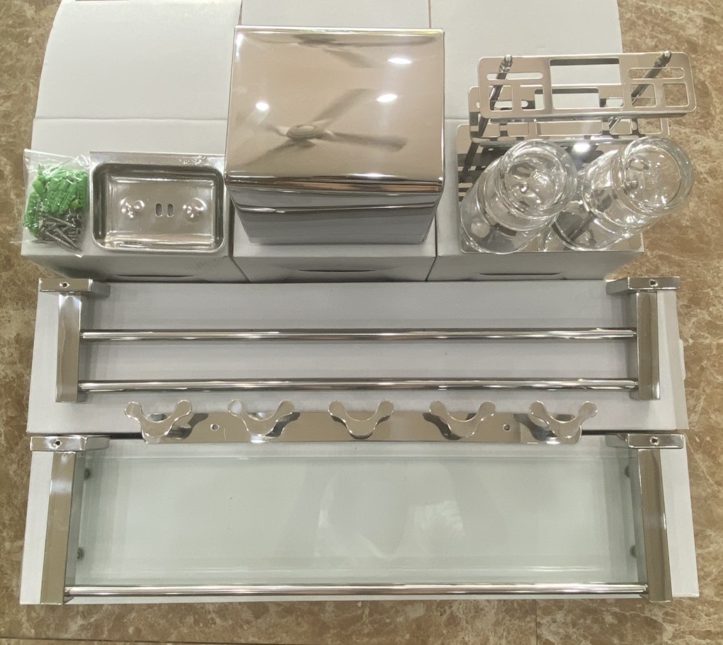Bộ Phụ Kiện Nhà Tắm ATP, 7 Món, Inox 201 Bóng, Dày. Ship Ít Nhất Số Lượng 02 Bộ.