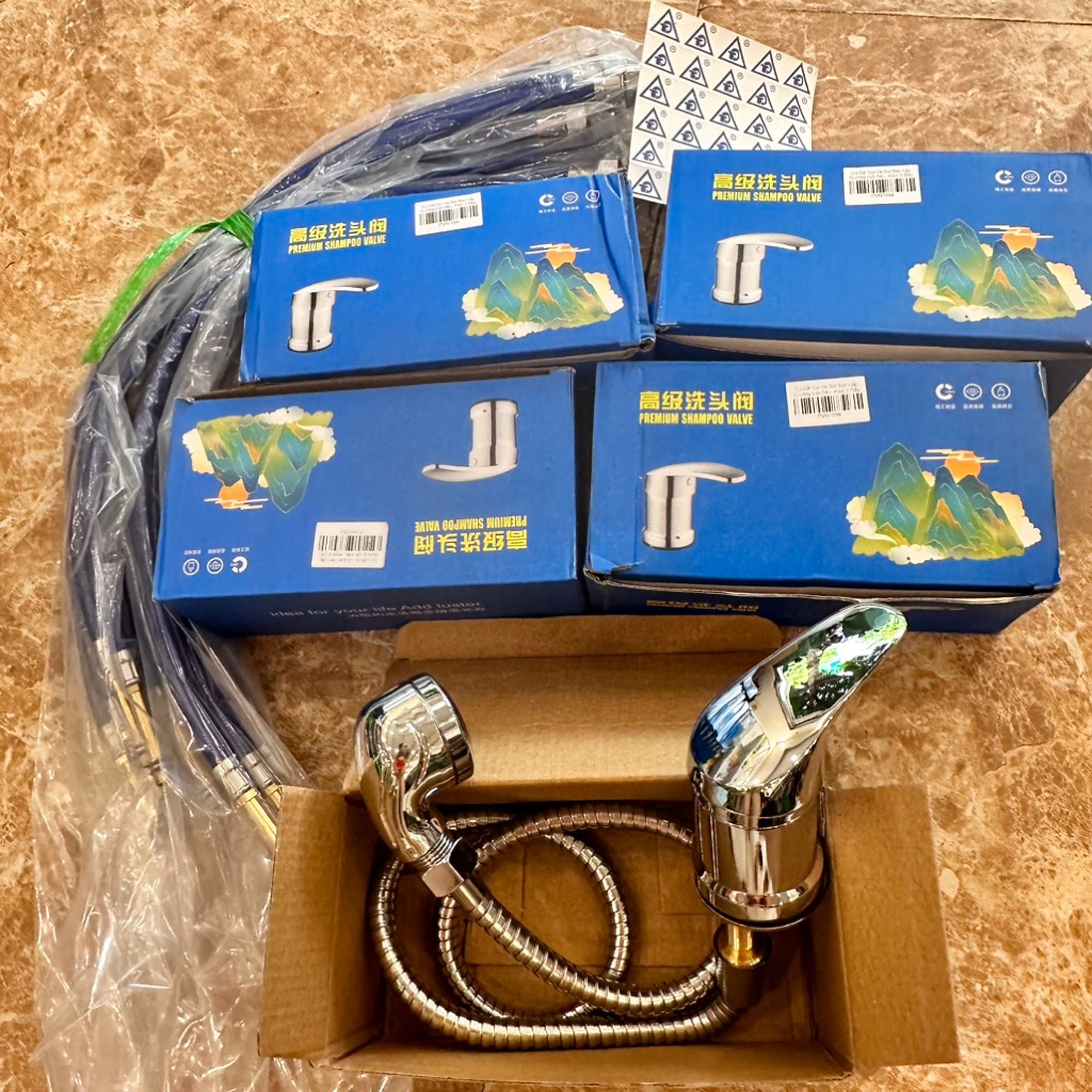 Củ Gật Gù Đồng Mạ Crom Và Bát Sen Lắp Giường Gội Đầu, Dây Bát Nhựa Đen, Kèm 2 Dây Cấp Xanh